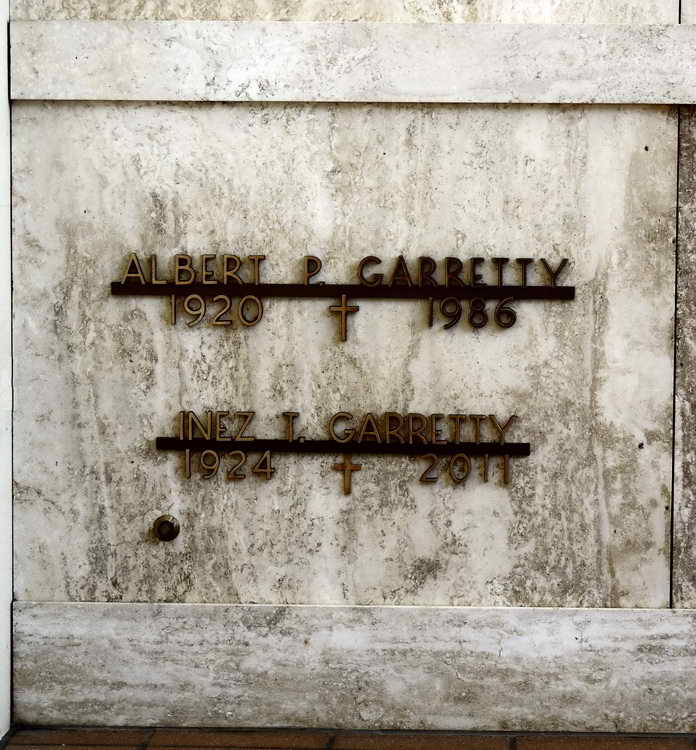 Crypt marker for Albert P. Garretty in Mausoleum #2, Alta
