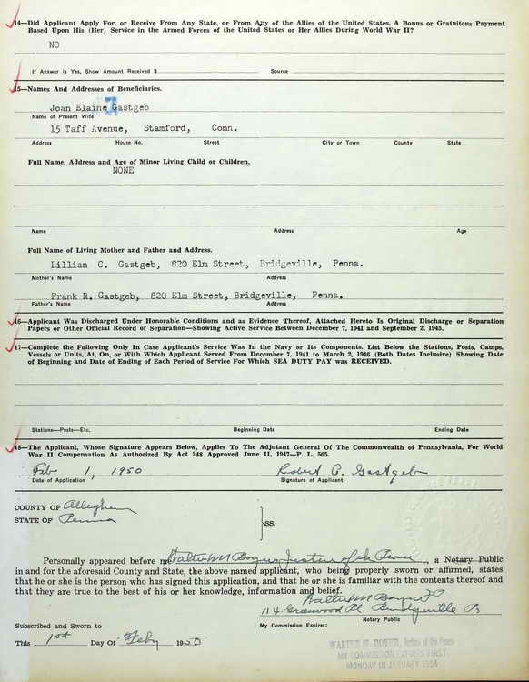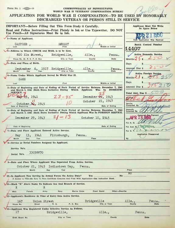 application for the Pennsylvania WWII Veterans Compensation bonus.