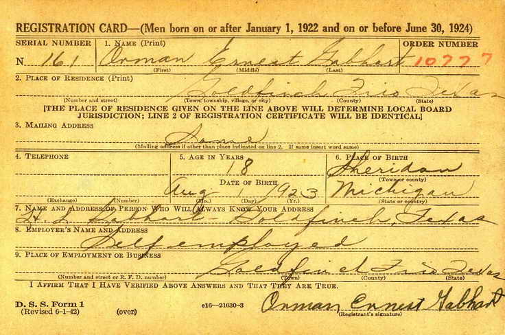 Orman registered for the draft in Goldfinch (Frio