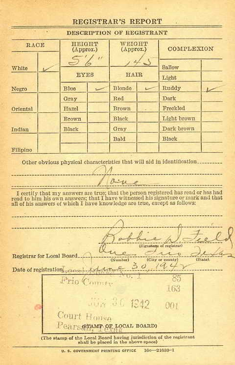 county), Texas on 30 June 1943 and was inducted into the Army at Fort
