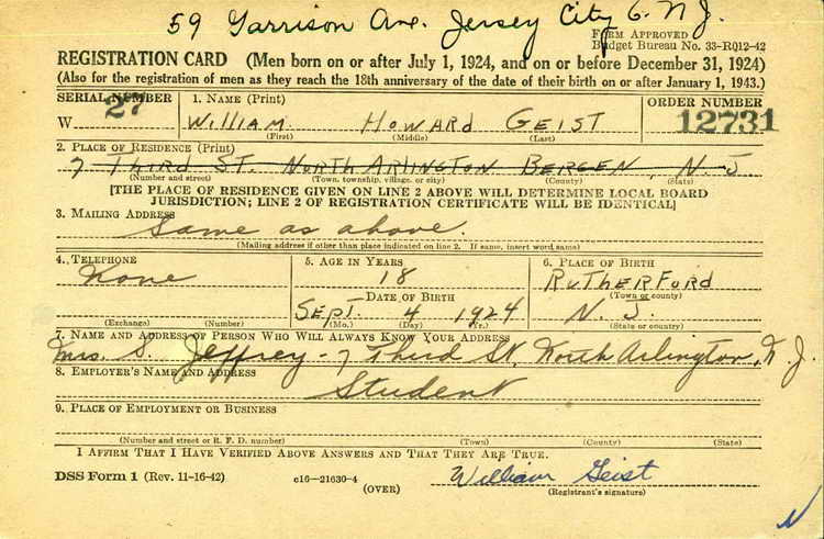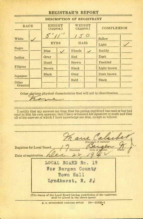 draft in Lyndhurst, NJ on 22 December 1942 and was inducted into the