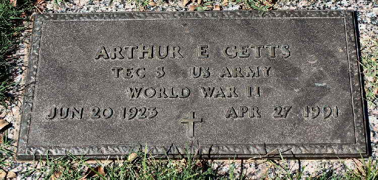 Grave marker for Arthur E. Getts in Crestview Memorial