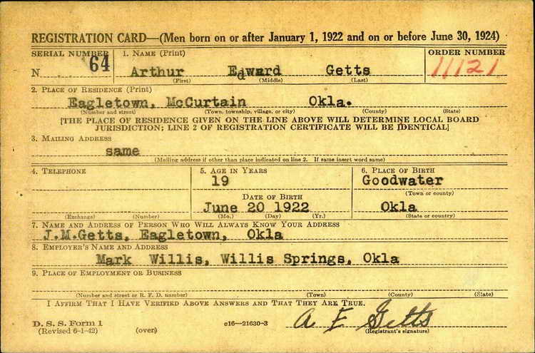 registered for the draft ca 1941 and was inducted into the Army on 30
