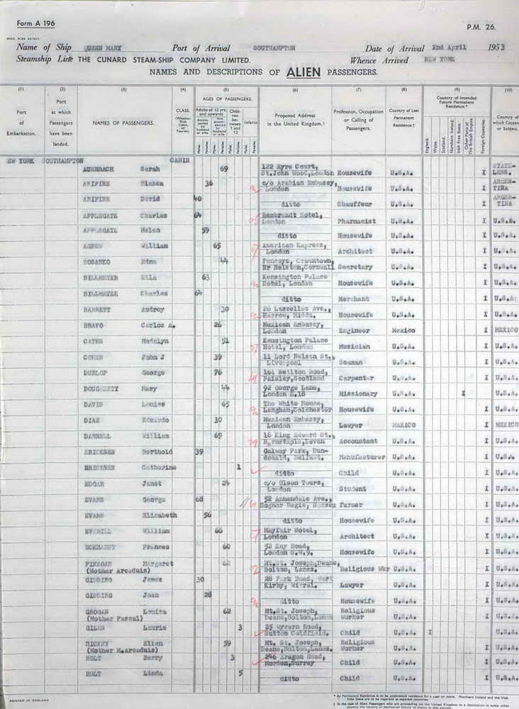 New York aboard the Queen Mary they arrived in Southampton on 21 April.
