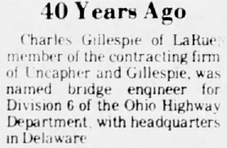 and Gillespie, was named bridge engineer for Division 6 of the Ohio