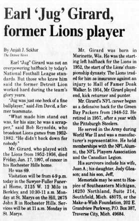 Mr. Girard, who played with the Lion» from 1952 to 1956, died