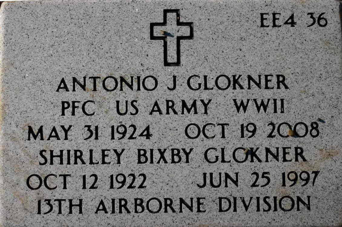 Grave marker for Antonio J. and Shirley (nee Bixby) Glokner