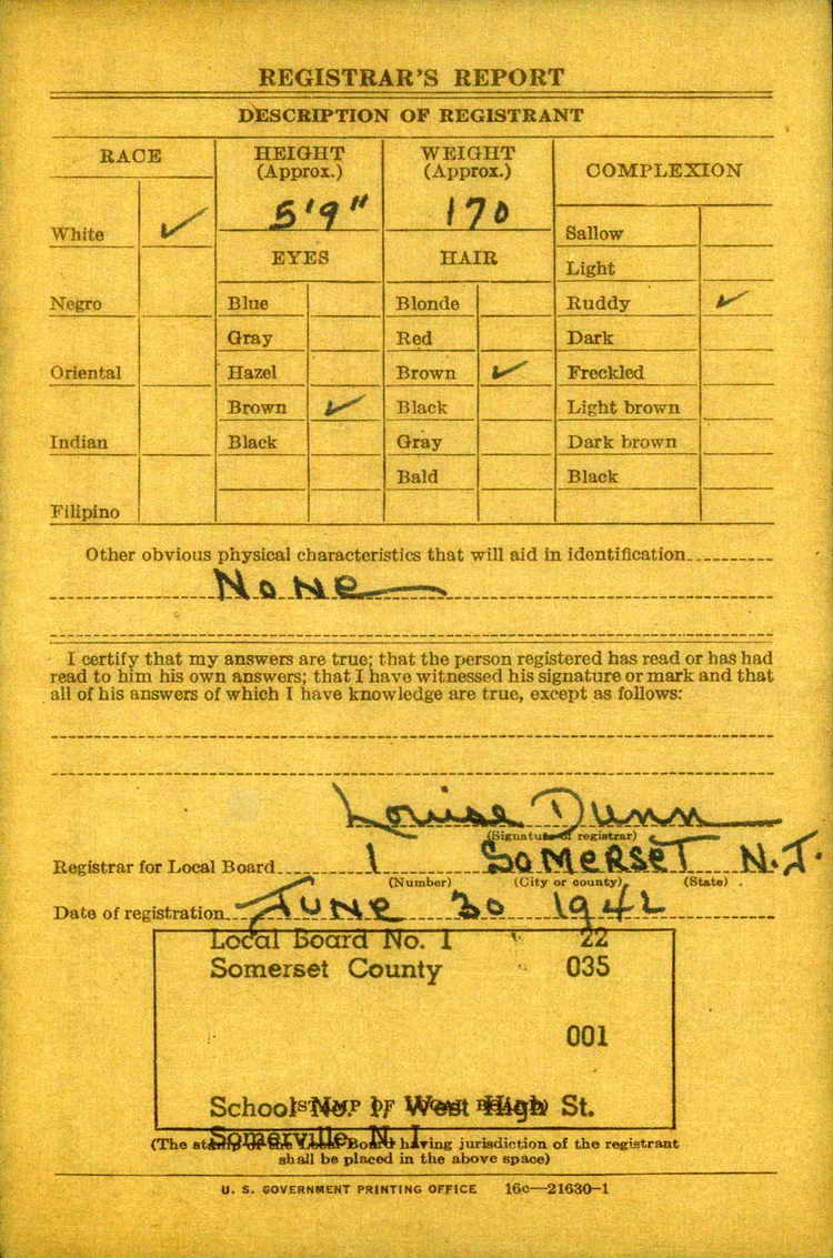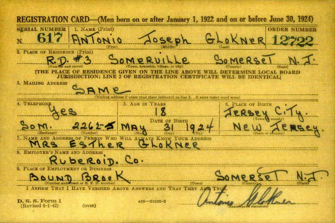 Antonio registered for the draft in Somerville, NJ on 30