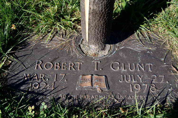 Record of Burial Place and grave marker for Robert T. Glunt in the Alto Reste Burial