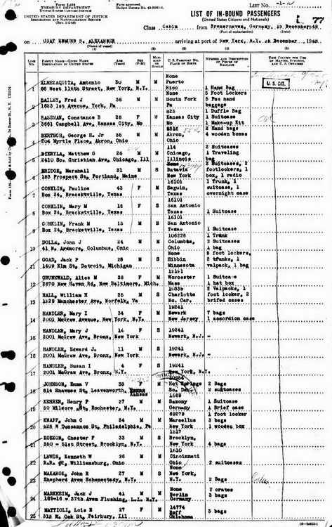 this time from Bremerhaven, Germany aboard the USAT Edmund B Alexander. |