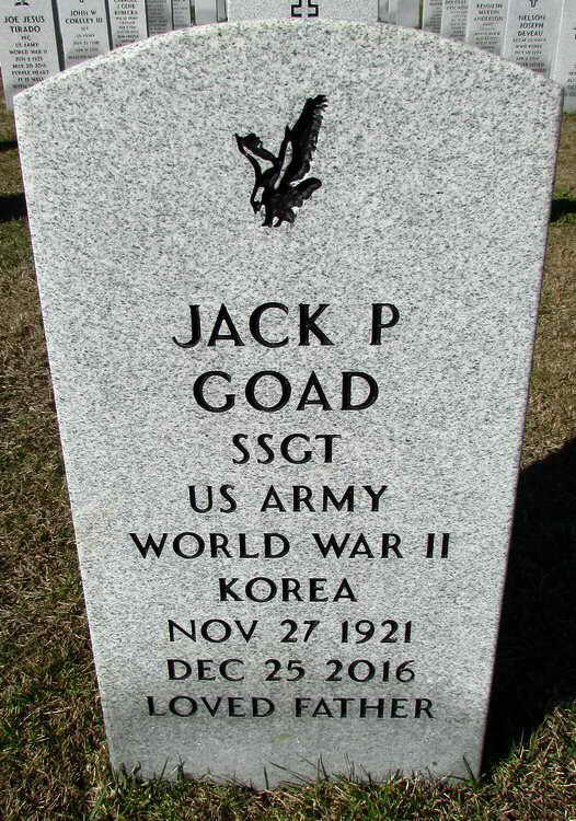 Grave marker for Jack P. Goad in Section 12, Site 209,
