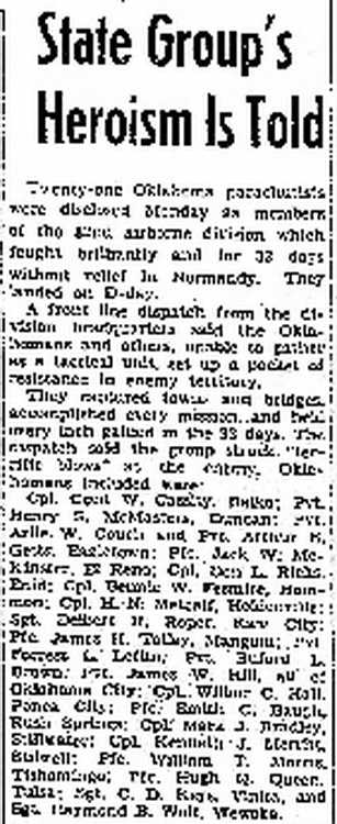 struck "terrific blows" at the enemy. Oklahomans included were: