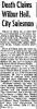 Born in Ponca City, he came to Oklahoma City four years ago. He was a salesman for the Bill Daniel Agency of the New England Life Insurance Co. He had been a sheet metal worker for the Sheet Metal Service Co. and was a member of the Sheet Metal Workers Union.