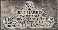 Grave marker for Jeff Harris in Section E, Lot 237, Grave 1, Ivy Lawn