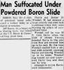 BORON, May 26 --- A slide! of powdered boron suffocated a worker today in a matter of minutes.