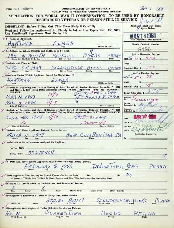 Hartman was sent to the 184th General Hospital, Mansfield, England.
