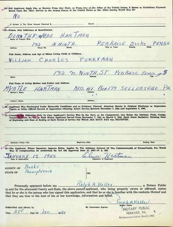 Hartman in South Perkasie Evangelical Cemetery, Perkasie (Bucks county),