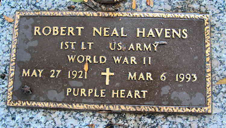 Grave marker of Robert N. Havens in the Greenlawn Memorial Park, Columbia (Richland County), South Carolina.