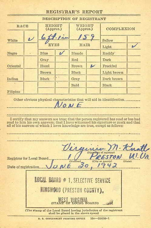 county), WV on 30 June 1942 and was inducted into the Army at Fort