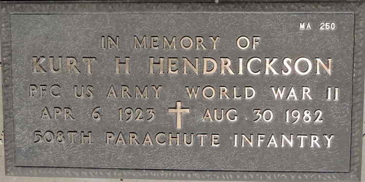 for Kurt H. Hendrickson in Section MA, Site 250, National Memorial