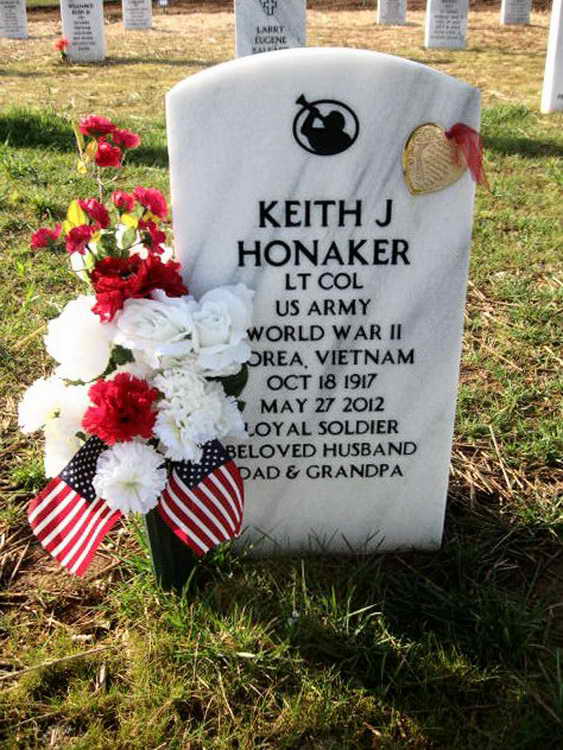 Grave marker for Keith J. Honaker, Lt. Col, ret.) in