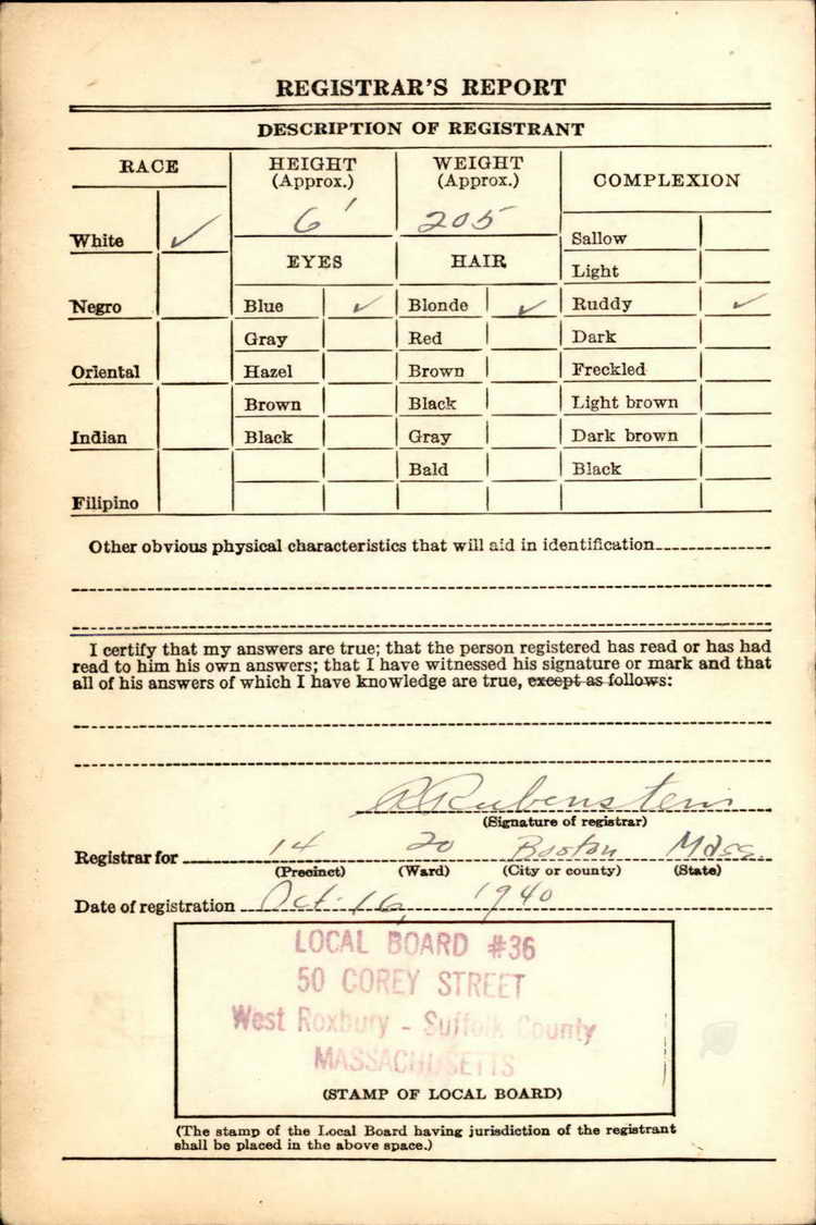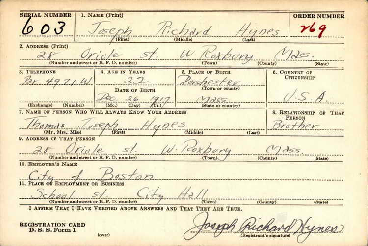 Joseph registered for the draft in West Roxbury, MA on 16