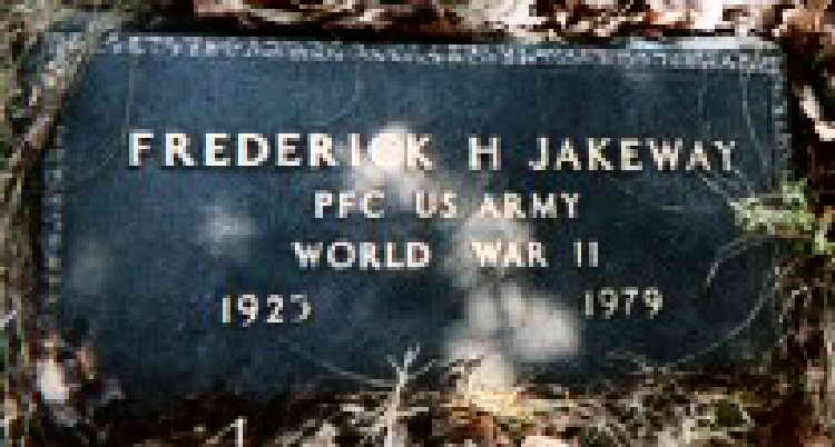 Grave Marker for Frederick H. Jakeway in the Friendship Township Cemetery, Harbor Springs (Emmet County), Michigan.