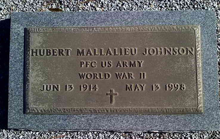 Grave marker for Hubert M. Johnson in Section B1, Lot