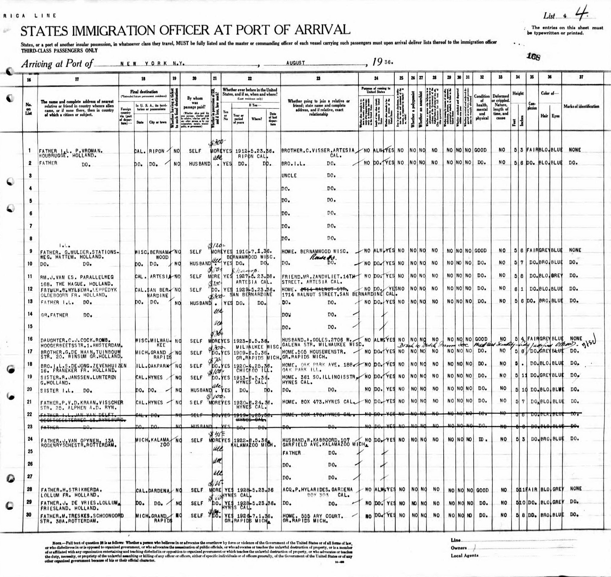 arriving in New York City from Rotterdam, the Netherlands. The family