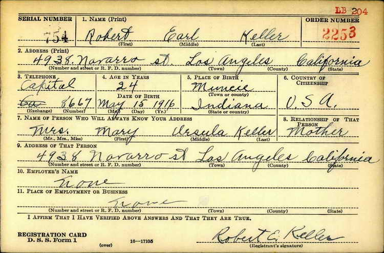 was born in Muncie, IN on 15 May 1916 and found his way out to Los