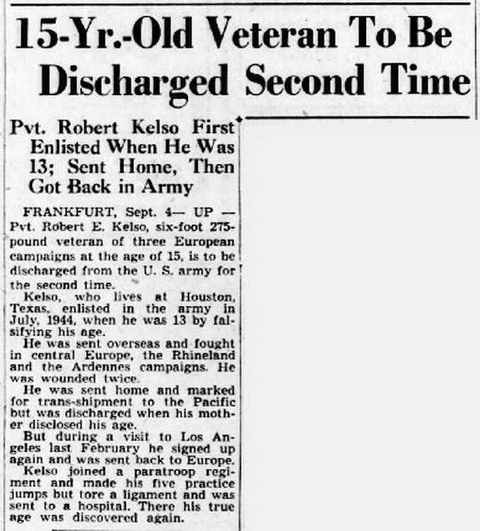 Pvt. Robert Kelso First Enlisted When He Was 13; Sent Home,