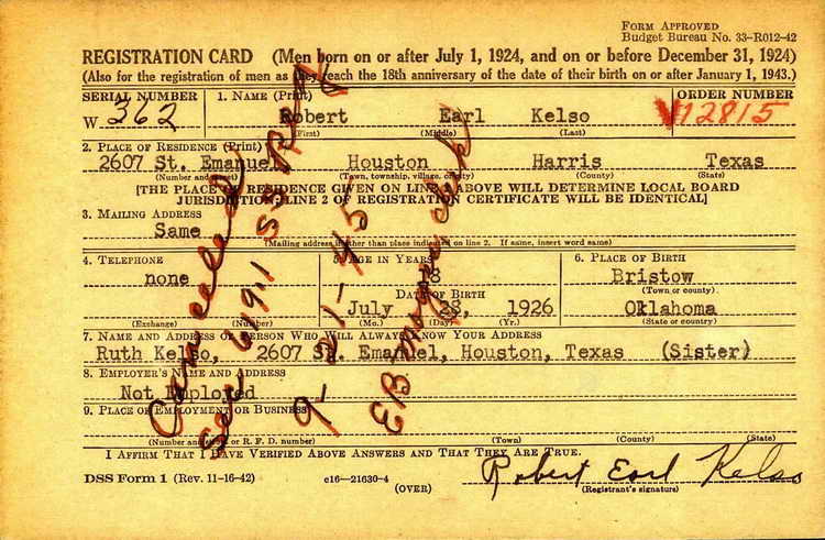 Kelso, who lives at Houston, Texas, enlisted in the army in July, 1944,