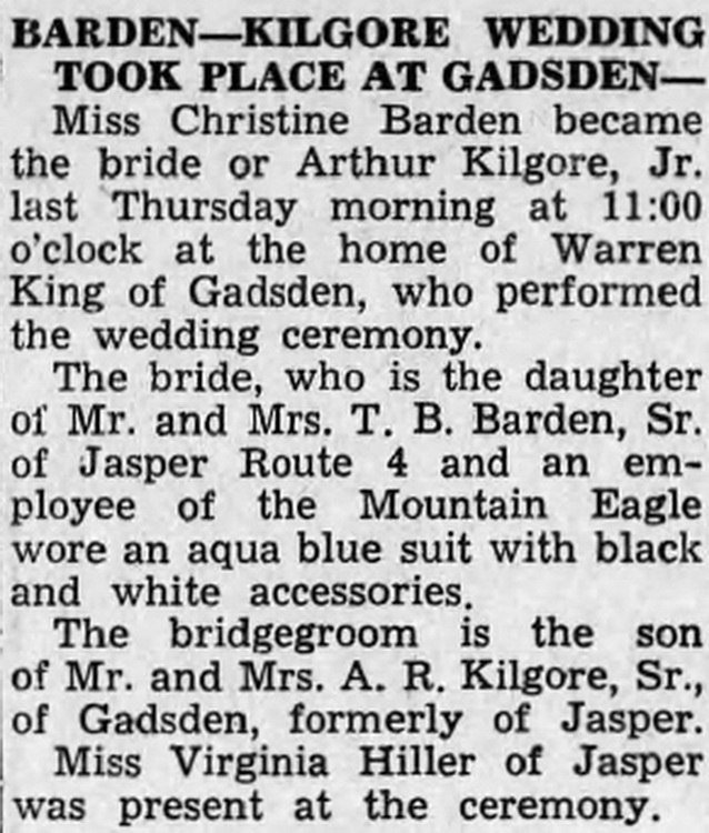 BARDEN KILGORE WEDDING TOOK PLACE AT GADSDEN