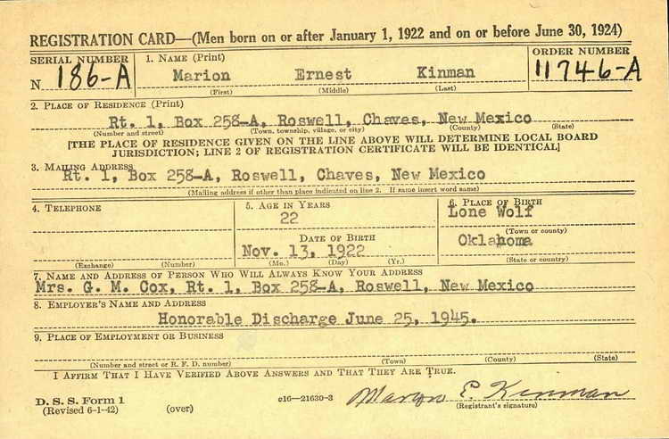 registered for the draft ca. 1941 and enlisted in the Army at Santa Fe, NM on 29 June