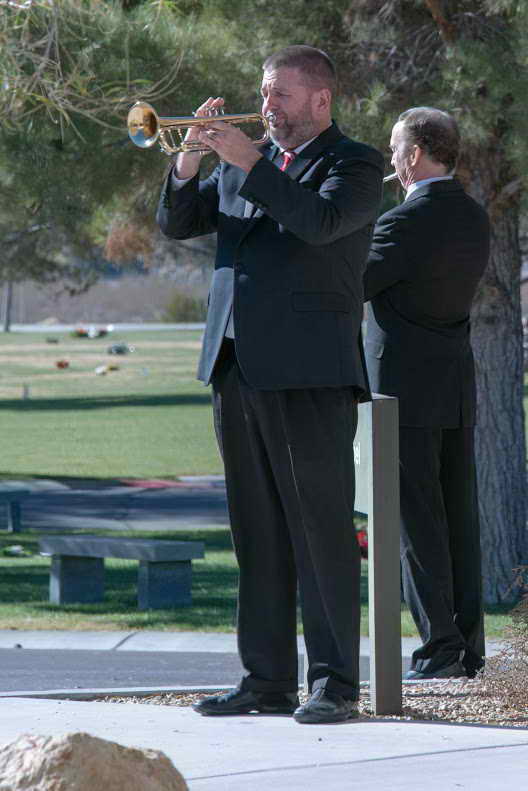 Two Buglers playing "taps", one as the primary and the other acting as the echo