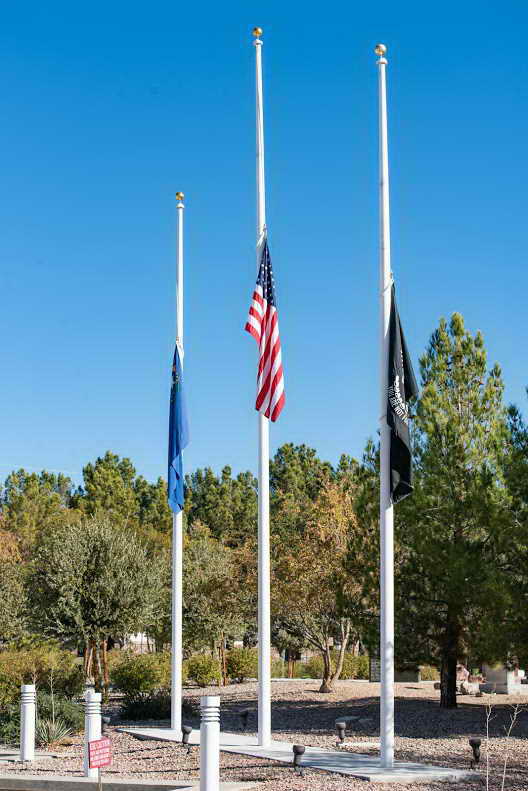 Flags At Cemetery with beautiful blue skies during Bill's memorial service