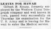 Gilbert Knupp sailed from Fort Slocum, New York to Honolulu, HI aboard