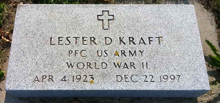 Grave marker for Lester D. Kraft in Pleasant Hill