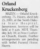 HAZEN --- Orland Kruckenberg, 75, Hazen, died July 25, 2009, at the North Dakota State Hospital, Jamestown. Services will be held at 9 a.m. MDT Thursday, July 30, at Peace Lutheran Church, Hazen. Burial will be in the North Dakota Veterans Cemetery, rural Mandan.