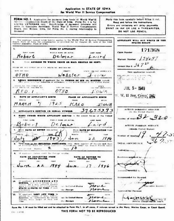 Iowa for WWII Veterans Compensation in recognition