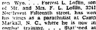 who fought the war together in the 101st airborne division returned together Friday night. Pvt. Frederick K. Hall, son of Mr. and Mrs. George O. Hall, 3609 NW 24, and Sgt. Forrest Laurence Loflin, whose wife lives at 3241
