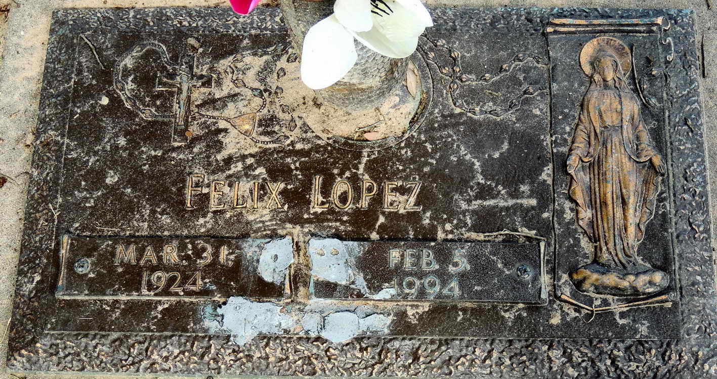 Grave marker for Felix Lopez in the Garden of Faith,