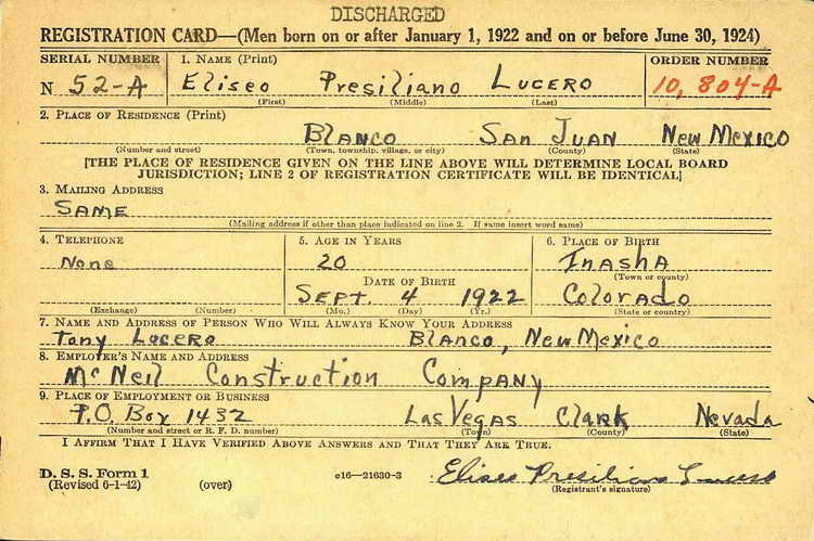 P. Lucero registered for the draft ca. 1942 and was