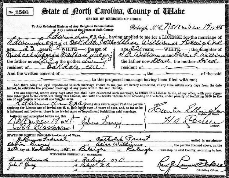 married Alice Laveda Williams [1923-1982] in Raleigh on