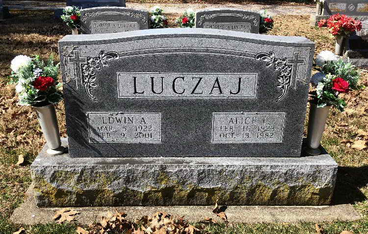 Grave markers for Edwin A Luczaj in Saint Ann