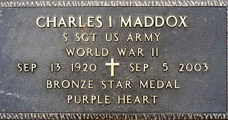 Grave marker for Charles Ivey Maddox in Garden of