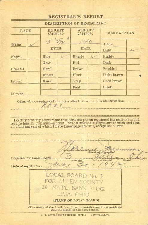 county), Ohio on 30 June 1942 and was inducted into the army