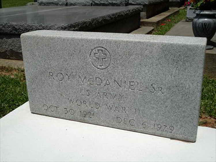 Grave marker for Roy McDaniel in Saint Theresa's Cemetery,