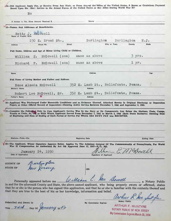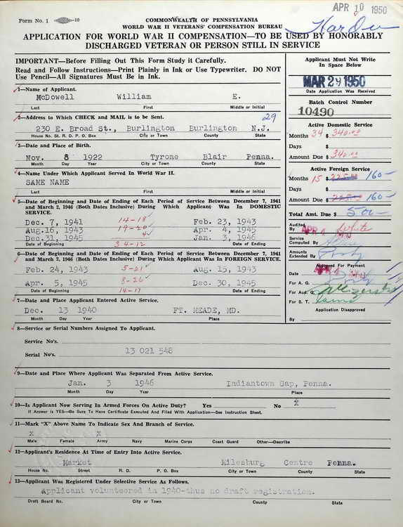 However, this application for the Pennsylvania WWII Veterans Bonus