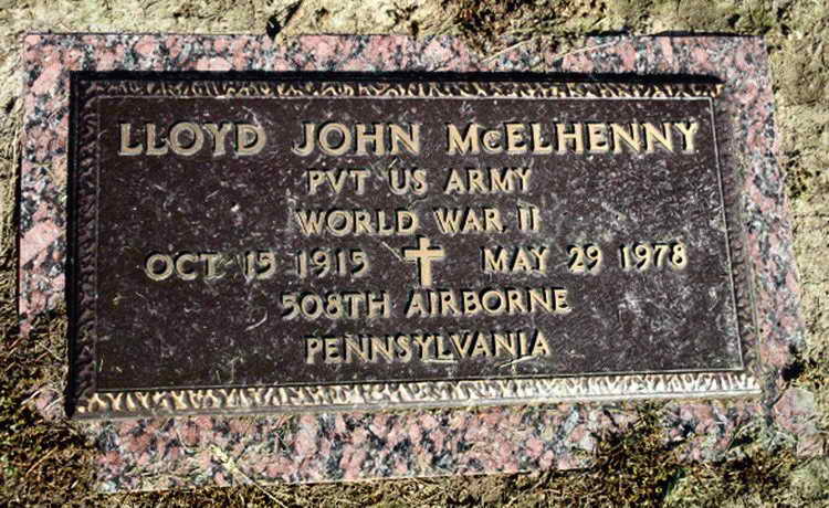 Burial record and grave marker for Lloyd J, McElhenny in Donegal Section,